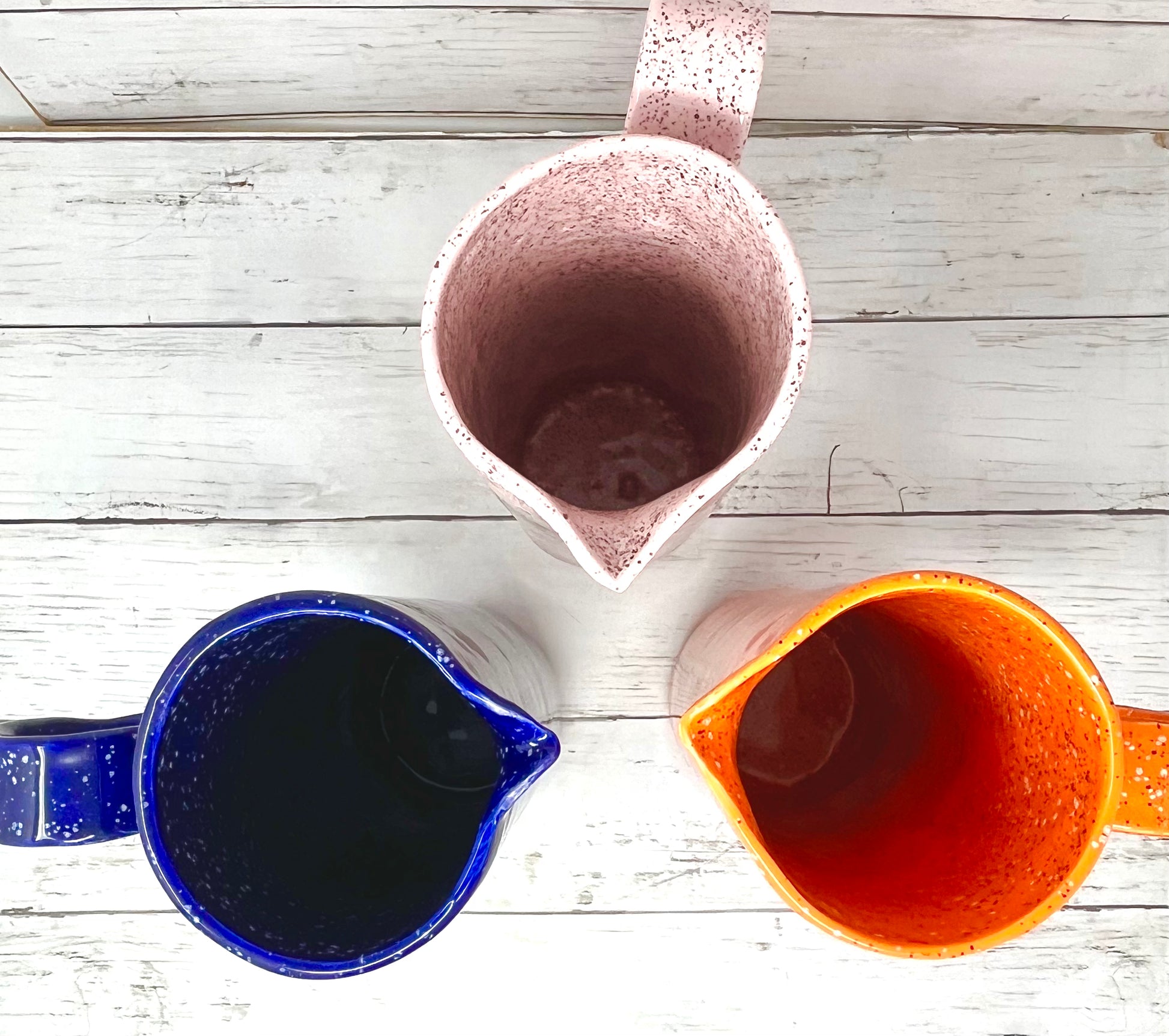 This beautiful and sleek pitcher is hand-made and hand-painted. This pitcher is slim and perfect for dispensing cold beverages like orange Juice for your meal.